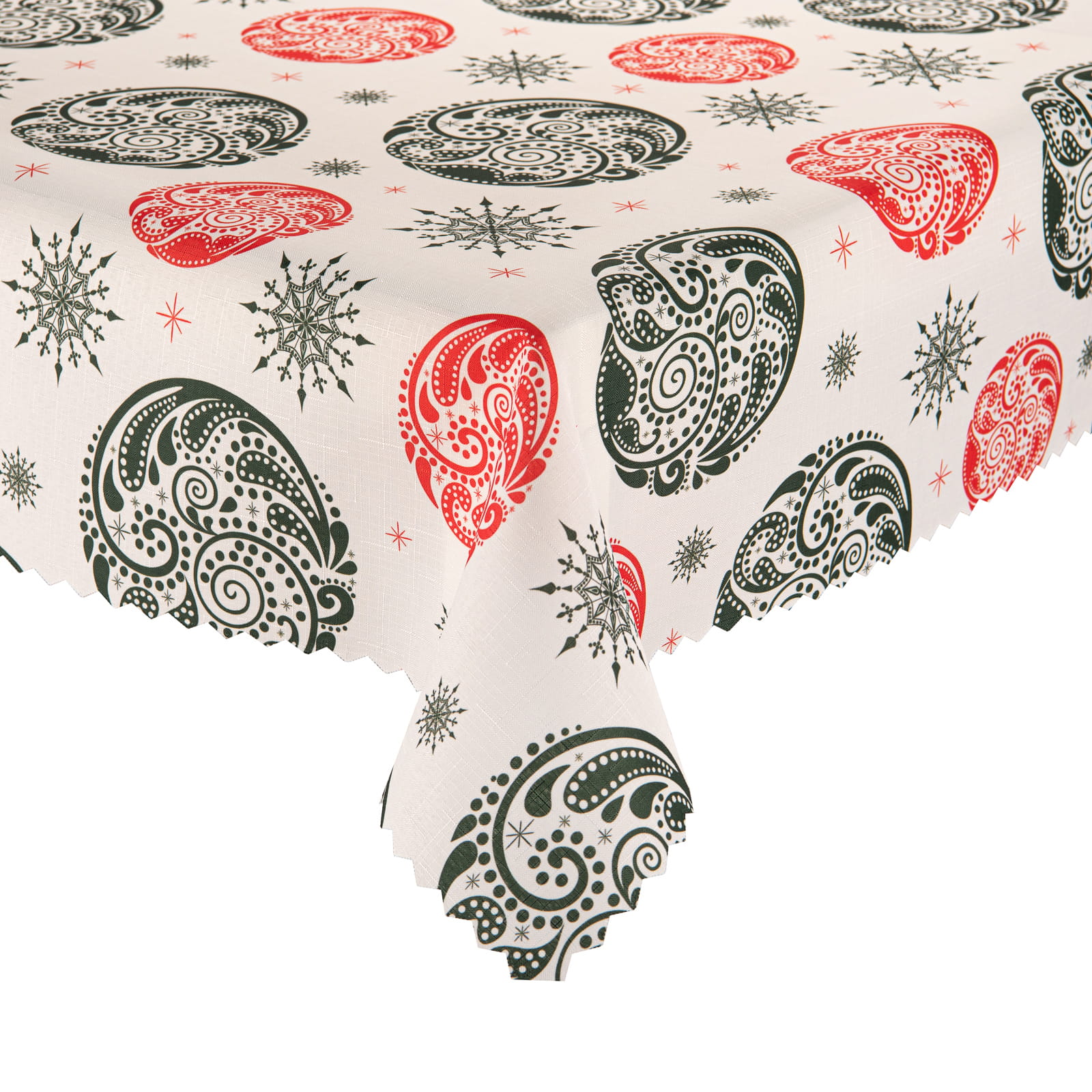 Dekoracyjne, ząbkowane wykończenie brzegów podkreśla elegancję i sprawia, że obrus Bożonarodzeniowy harmonijnie pasuje zarówno do nowoczesnych, jak i tradycyjnych aranżacji stołu. Tkanina nie traci swojego nasycenia barw oraz wyrazistości wzoru nawet po licznych praniach, a szeroki wybór rozmiarów pozwala idealnie dopasować obrus do każdego, także bardzo dużego, świątecznego stołu.
