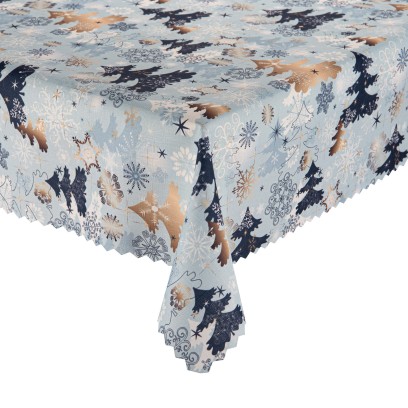 Obrus świąteczny Boże Narodzenie niebieski w choinki 220x140