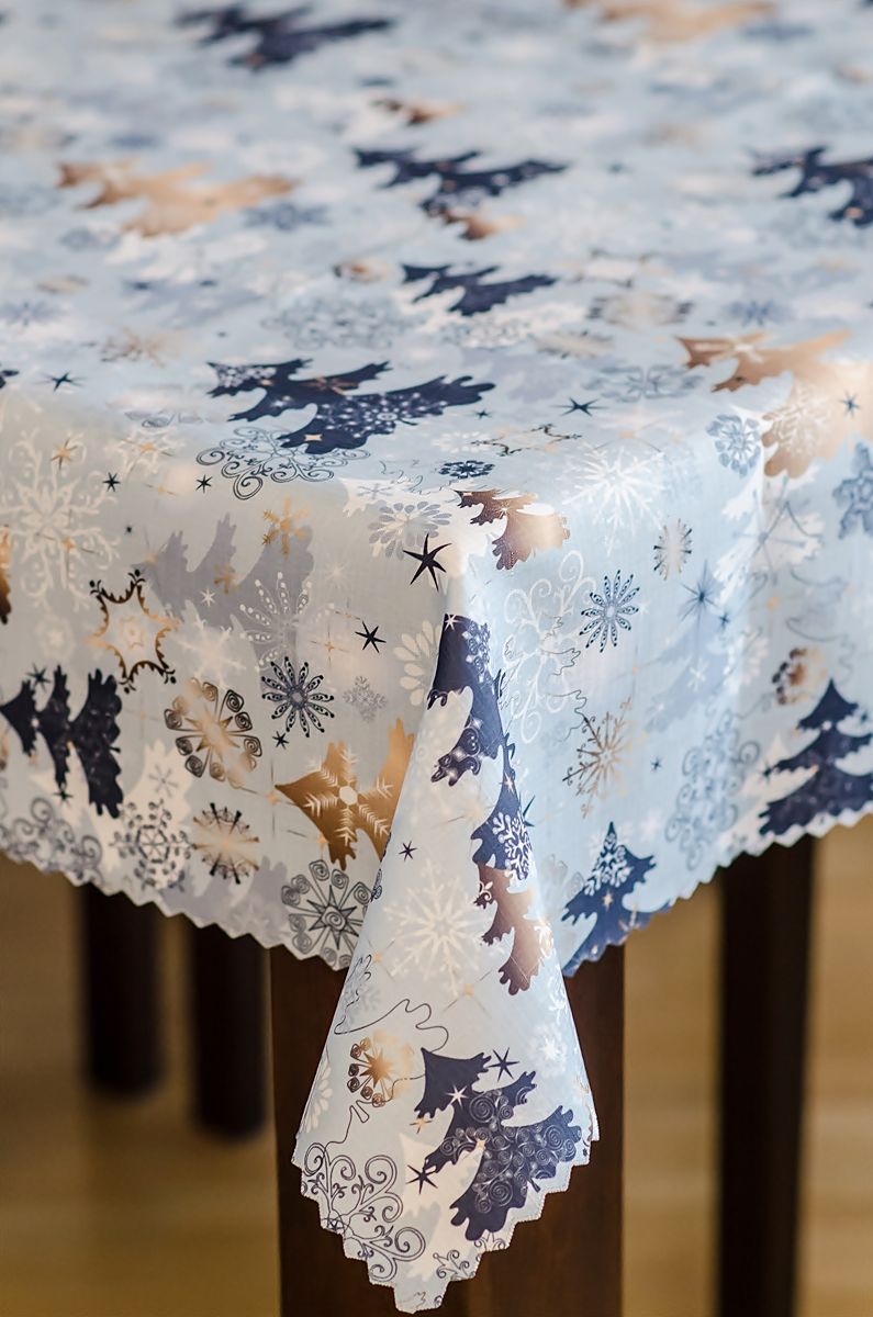 Obrus świąteczny plamoodporny niebieski z choinkami i śnieżynkami to doskonały wybór dla osób, które chcą połączyć świąteczny nastrój z najwyższą wygodą użytkowania oraz trwałością.