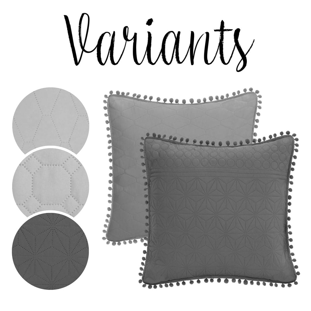 Dodatkowe informacje: Posiada certyfikat Oeko-Tex. Pompony znajdują się na każdym boku poszewek. Średnica pompona – 1 cm. Mogą występować różnice między pojedynczymi egzemplarzami, ze względu na wzór pikowania.