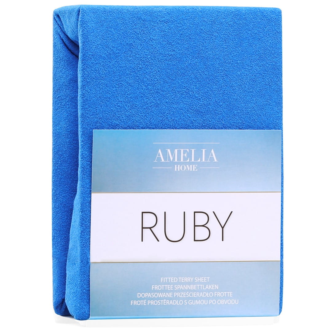 AmeliaHome prześcieradło frotte niebieskie z gumką 200x220 cm.