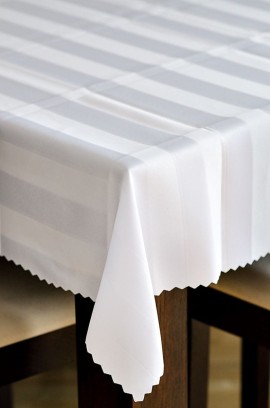 Biały obrus plamoodporny w pasy 140x200