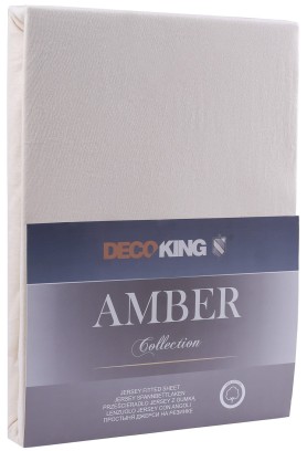 DecoKing prześcieradło jersey kremowe z gumką 180x200