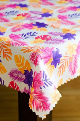 Obrus drukowany plamoodporny jest praktyczny, nowoczesny i cechuje się wyjątkową trwałością.Wykonany z tkaniny poliestrowej, o gramaturze od 140 do 160 g/m2.Tkanina jest obustronnie wzbogacona powłoką plamoodporną (teflon).Tego typu apretura nie pozwala na wchłanianie płynów i brudu we włókna tkaniny, co pozwala uchronić obrus przed uciążliwymi plamami i jest znakomitym rozwiązaniem nie tylko w domu , lecz także w hotelach, kawiarniach, restauracjach.