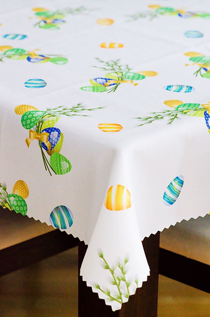 Obrus Wielkanocny drukowany plamoodporny jest praktyczny, nowoczesny i cechuje się wyjątkową trwałością. Wykonany z tkaniny poliestrowej, o gramaturze od 140 do 160 g/m2. Tkanina jest obustronnie wzbogacona powłoką plamoodporną (teflon).