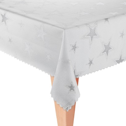Obrus świąteczny Boże Narodzenie srebrne gwiazdki duże