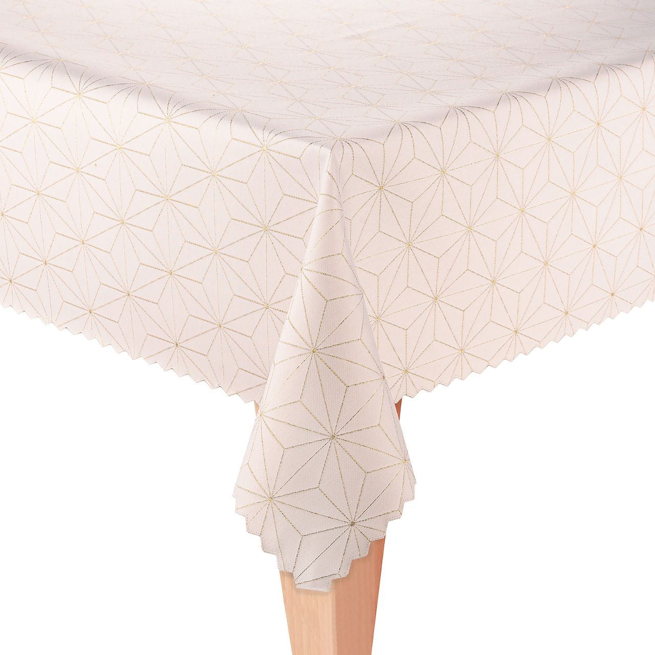Elegancki obrus świąteczny z geometrycznym złotym wzorem podkreśli uroczysty nastrój każdej okazji. Wyjątkowa trwałość oraz uniwersalność sprawiają, że to doskonały wybór na święta i do codziennego użytkowania.