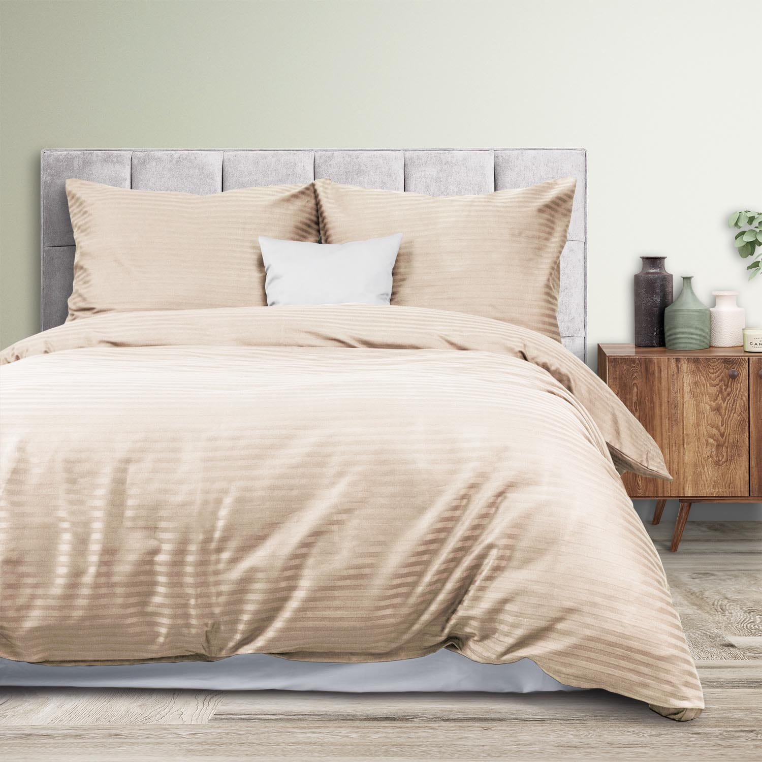 Ekskluzywna pościel satynowa CIZGILI w kolorze cappuccino, rozmiar 160x200 cm