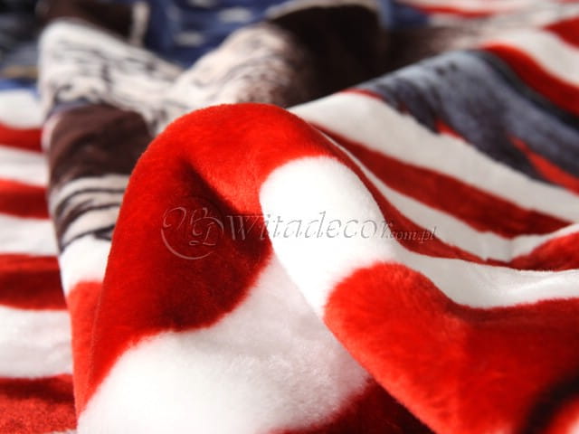 Koc Elway 160x210 Orzeł USA to doskonały wybór dla osób poszukujących eleganckiego, a zarazem praktycznego dodatku do wnętrza. Z jego wyjątkowym motywem amerykańskiego orła i flagi, stanie się nie tylko źródłem ciepła, ale również stylowym akcentem, który podkreśli charakter każdego pomieszczenia.