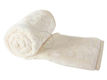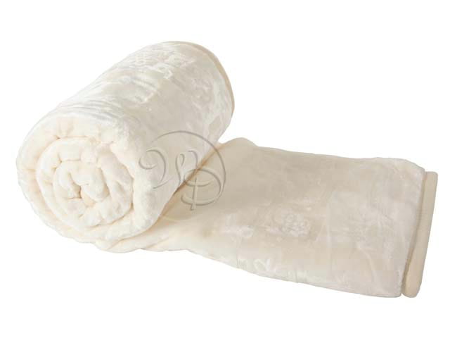 Koc Elway w kolorze ecru z wzorem tłoczonym. Ozdobna strona koca prezentuje kolor ecru z tłoczonym wzorem i delikatnym połyskiem a druga strona jest odzwierciedleniem tego samego koloru w nieco jaśniejszej tonacji bez połysku i tłoczonego wzoru.