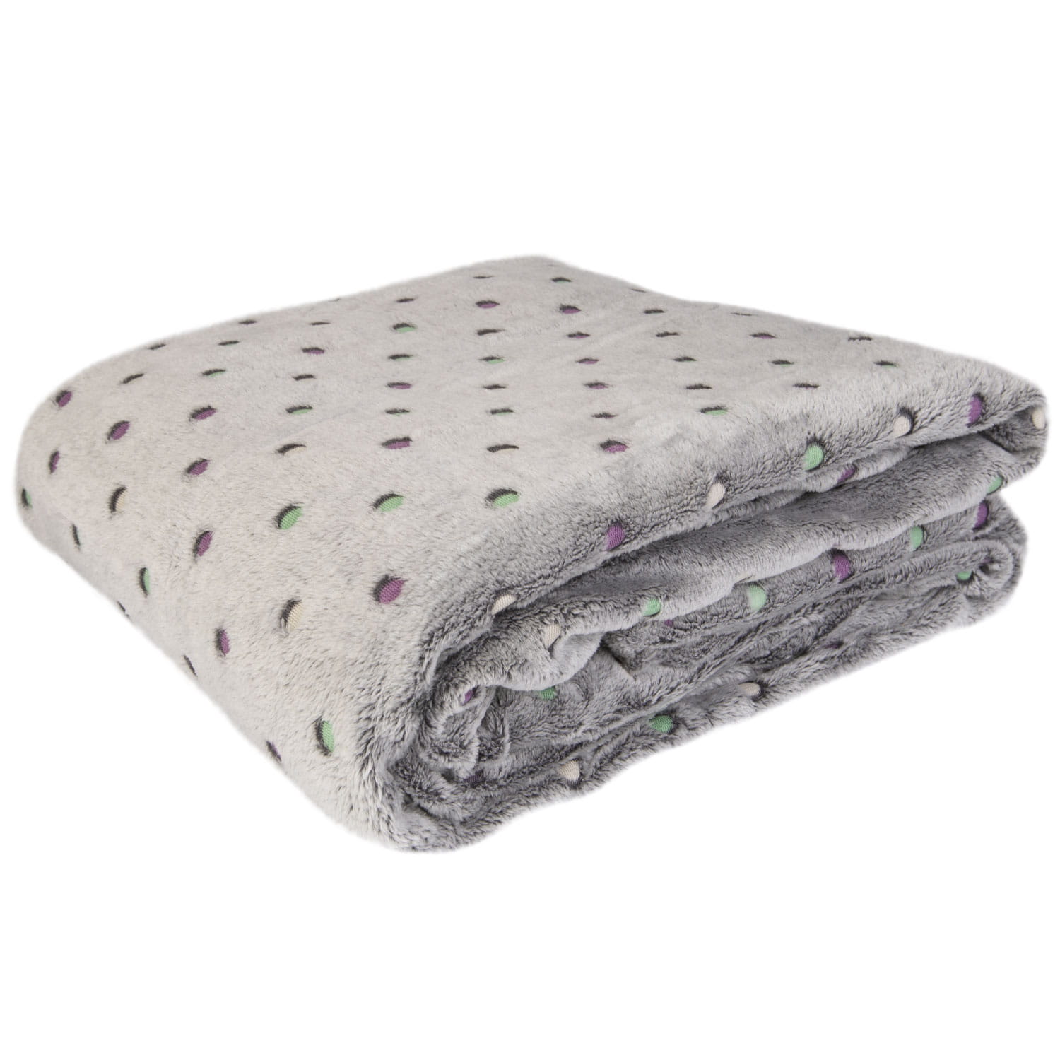 Piękny i praktyczny koc wykonany z mikrofibry z nadrukiem we wzorze kolorowych kropek. Wykończony 1cm podwinięciem. Jest ciepły i miły w dotyku. Sprawdza się wizualnie – jako ozdoba pokoju i praktycznie – dając ciepło. Jest łatwy w konserwacji a do jego produkcji zastosowano najlepsze materiały