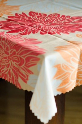 Obrus drukowany plamoodporny jest praktyczny, nowoczesny i cechuje się wyjątkową trwałością.Wykonany z tkaniny poliestrowej, o gramaturze od 140 do 160 g/m2.Tkanina jest obustronnie wzbogacona powłoką plamoodporną (teflon).Tego typu apretura nie pozwala na wchłanianie płynów i brudu we włókna tkaniny, co pozwala uchronić obrus przed uciążliwymi plamami i jest znakomitym rozwiązaniem nie tylko w domu , lecz także w hotelach, kawiarniach, restauracjach.