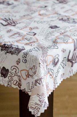 Obrus drukowany plamoodporny jest praktyczny, nowoczesny i cechuje się wyjątkową trwałością.Wykonany z tkaniny poliestrowej, o gramaturze od 140 do 160 g/m2.Tkanina jest obustronnie wzbogacona powłoką plamoodporną (teflon).Tego typu apretura nie pozwala na wchłanianie płynów i brudu we włókna tkaniny, co pozwala uchronić obrus przed uciążliwymi plamami i jest znakomitym rozwiązaniem nie tylko w domu , lecz także w hotelach, kawiarniach, restauracjach.