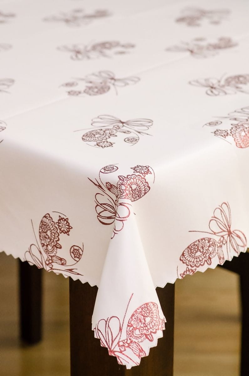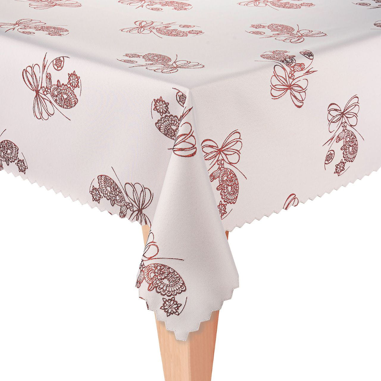 Obrus świąteczny plamoodporny jest praktyczny, nowoczesny i cechuje się wyjątkową trwałością.Wykonany z tkaniny poliestrowej, o gramaturze od 140.00 do 160 g/m2.Tkanina jest obustronnie wzbogacona powłoką plamoodporną (teflon).Tego typu apretura nie pozwala na wchłanianie płynów i brudu we włókna tkaniny, co pozwala uchronić obrus przed uciążliwymi plamami i jest znakomitym rozwiązaniem nie tylko w domu , lecz także w hotelach, kawiarniach, restauracjach.