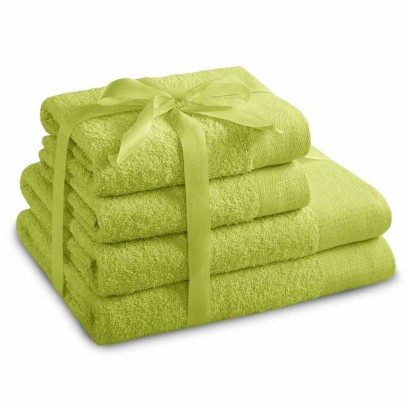 Zestaw ręczników Amari w zielonym kolorze, 100% bawełna, 4 elementy: 2 ręczniki 70x140 cm oraz 2 ręczniki 50x100 cm, gramatura 450 g/m2, gładkie wykończenie, Oeko-Tex Standard 100.