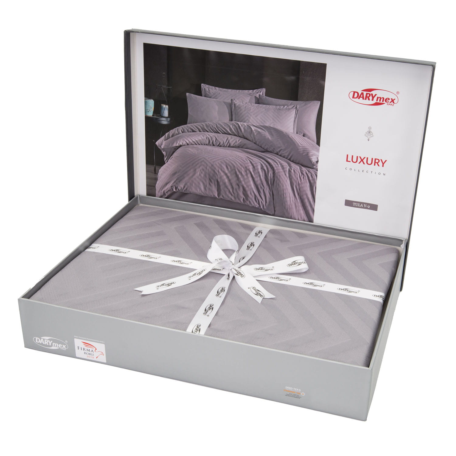 Komplety pościeli z kolekcji JACQUARD wykonane są z wysokiej jakości tkaniny bawełnianej o splocie satynowym która jest tkana techniką żakardową z przędzy NE 40/1 i z gęstością 200TC. Dzięki tej technice można tworzyć na tkanym materiale wielowymiarowe wzory o jedwabistym połysku. Tkanina żakardowa jest bardzo gładka, miękka i przyjemna w dotyku. Przędza przed tkaniem jest barwiona, dzięki czemu ten rodzaj pościeli jest bardziej naturalny, miękki i jedwabisty. Komplety pościeli uszyte są w bardzo elegancki sposób. Poszewki posiadają zakładkę hotelową oraz 5cm listwę, a poszwa zapinana jest na zamek błyskawiczny. Całość pakowana jest do ekskluzywnego pudełka co sprawia iż może być luksusowym prezentem. Komplety pościeli wyprodukowano z tkanin posiadających certyfikat OEKO-TEX.