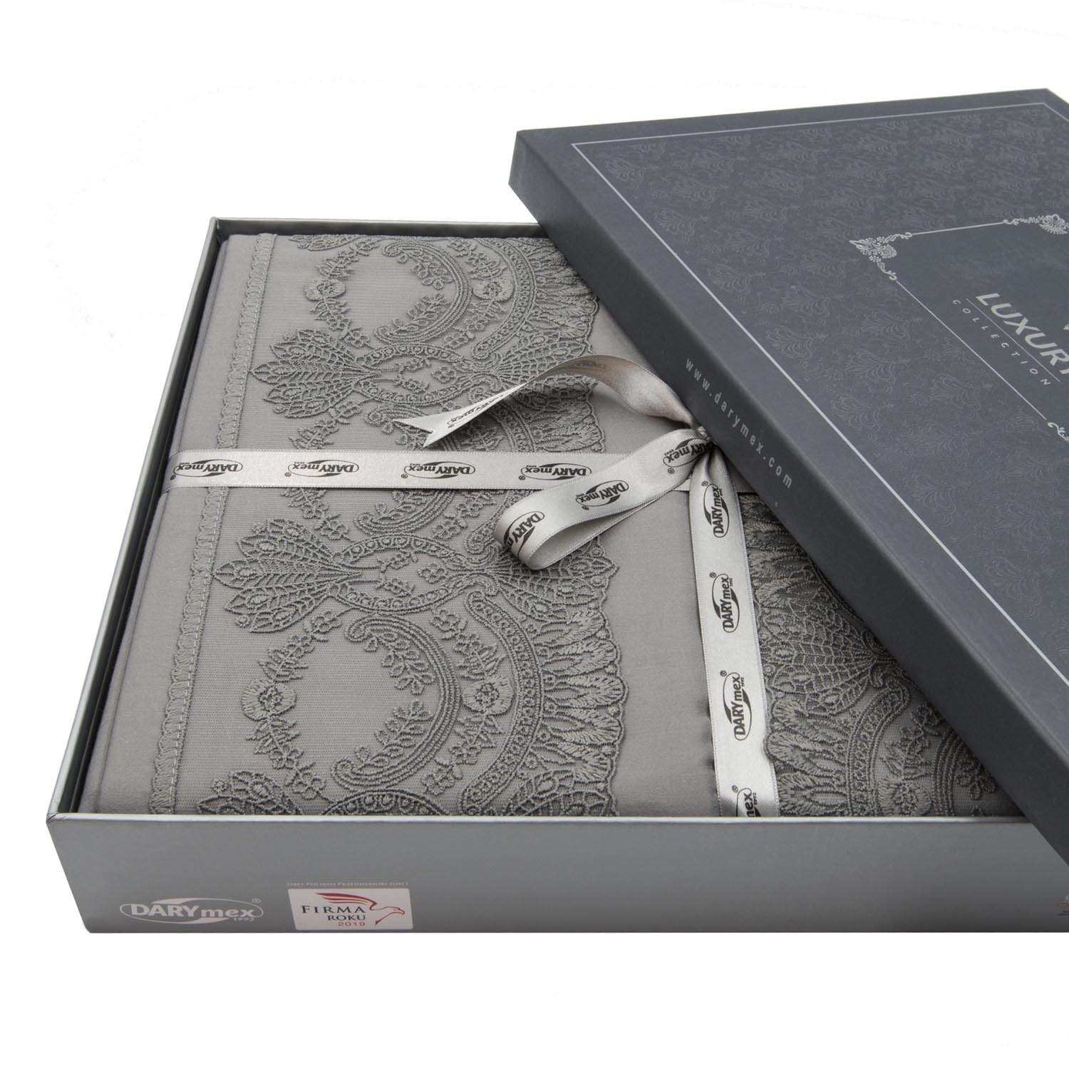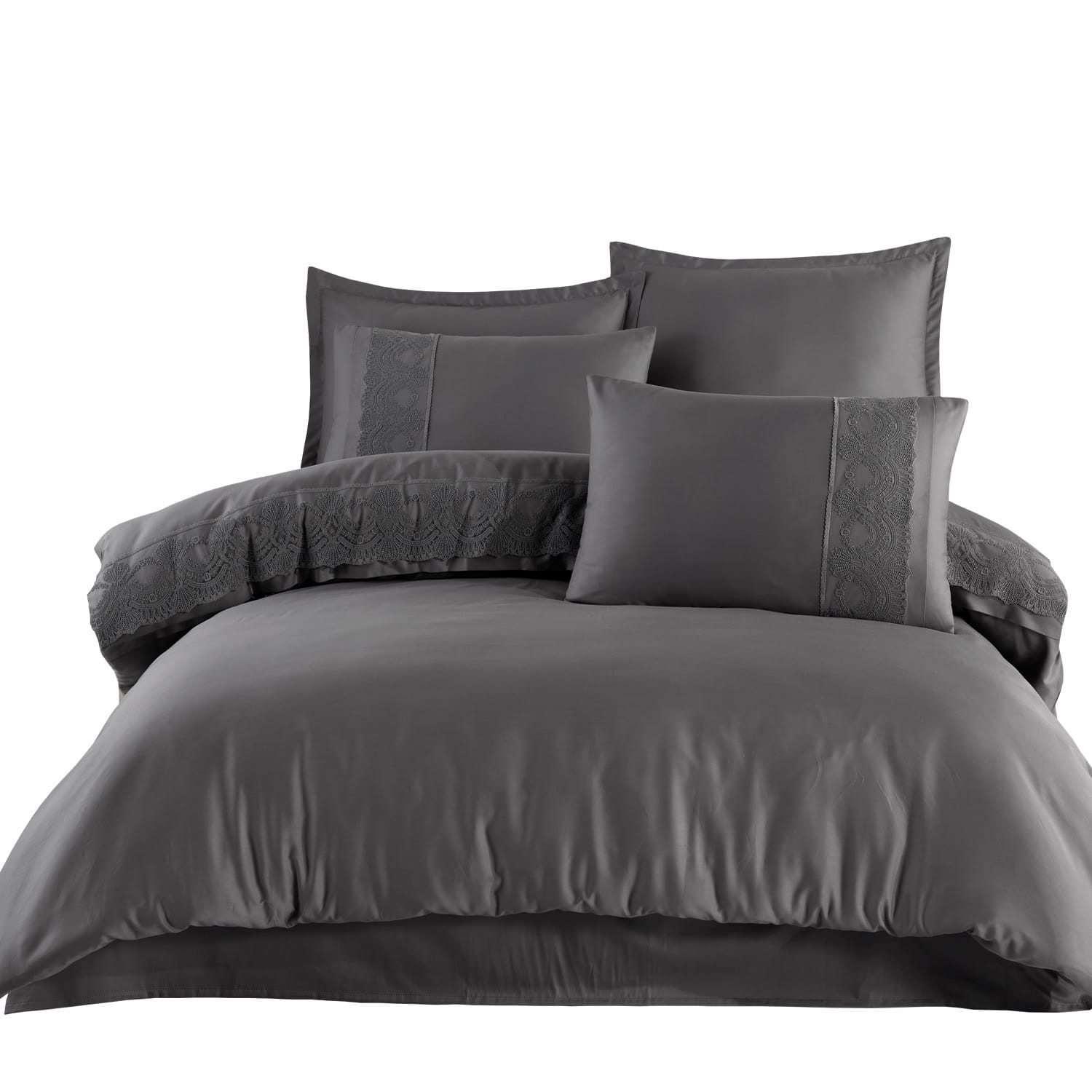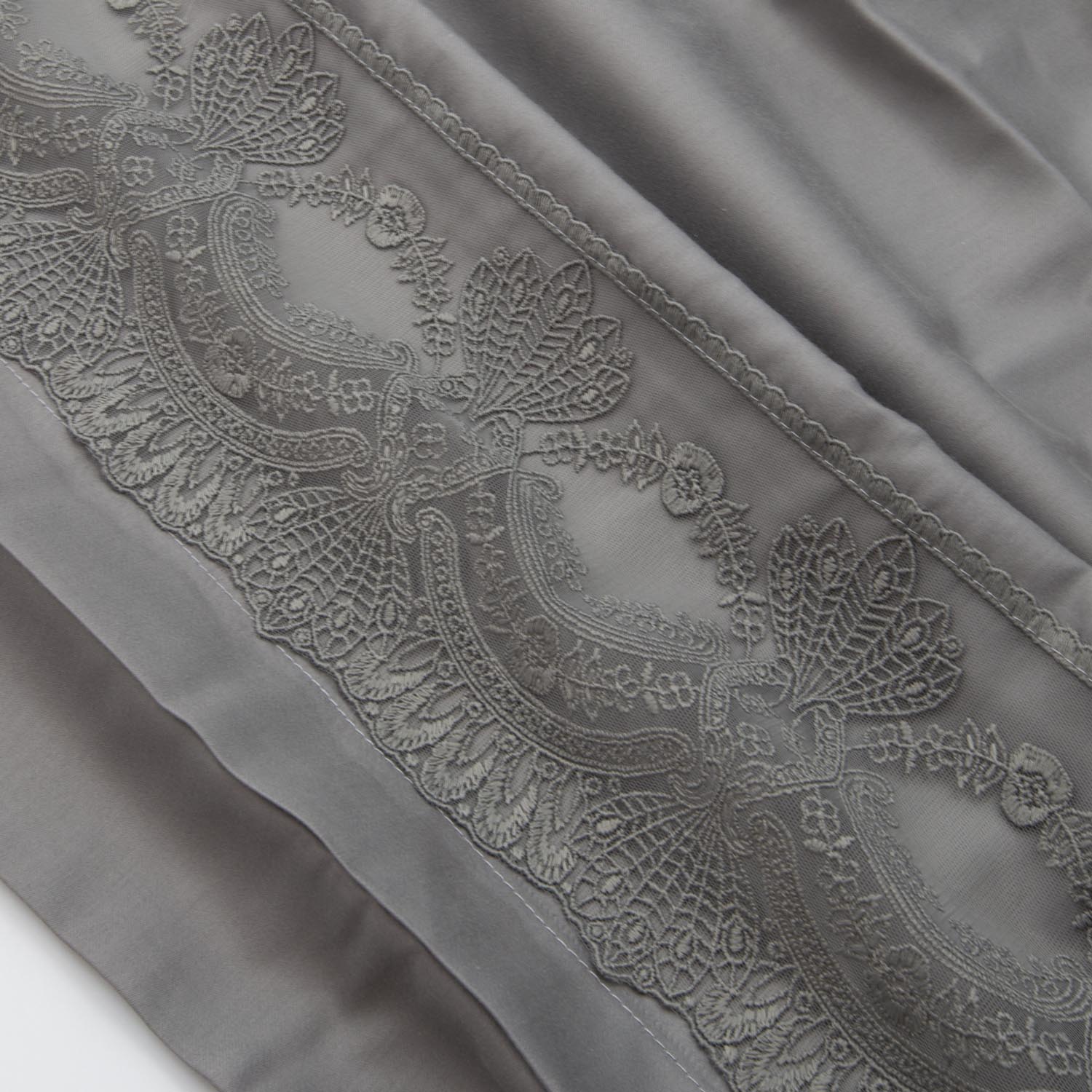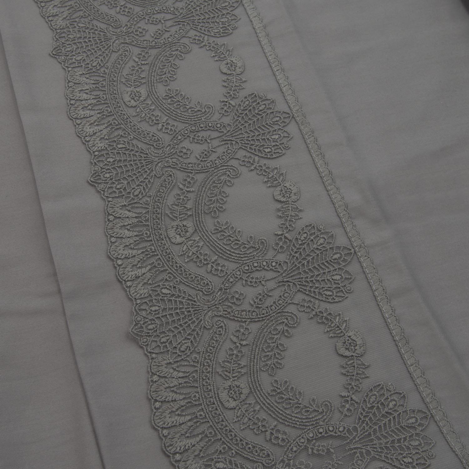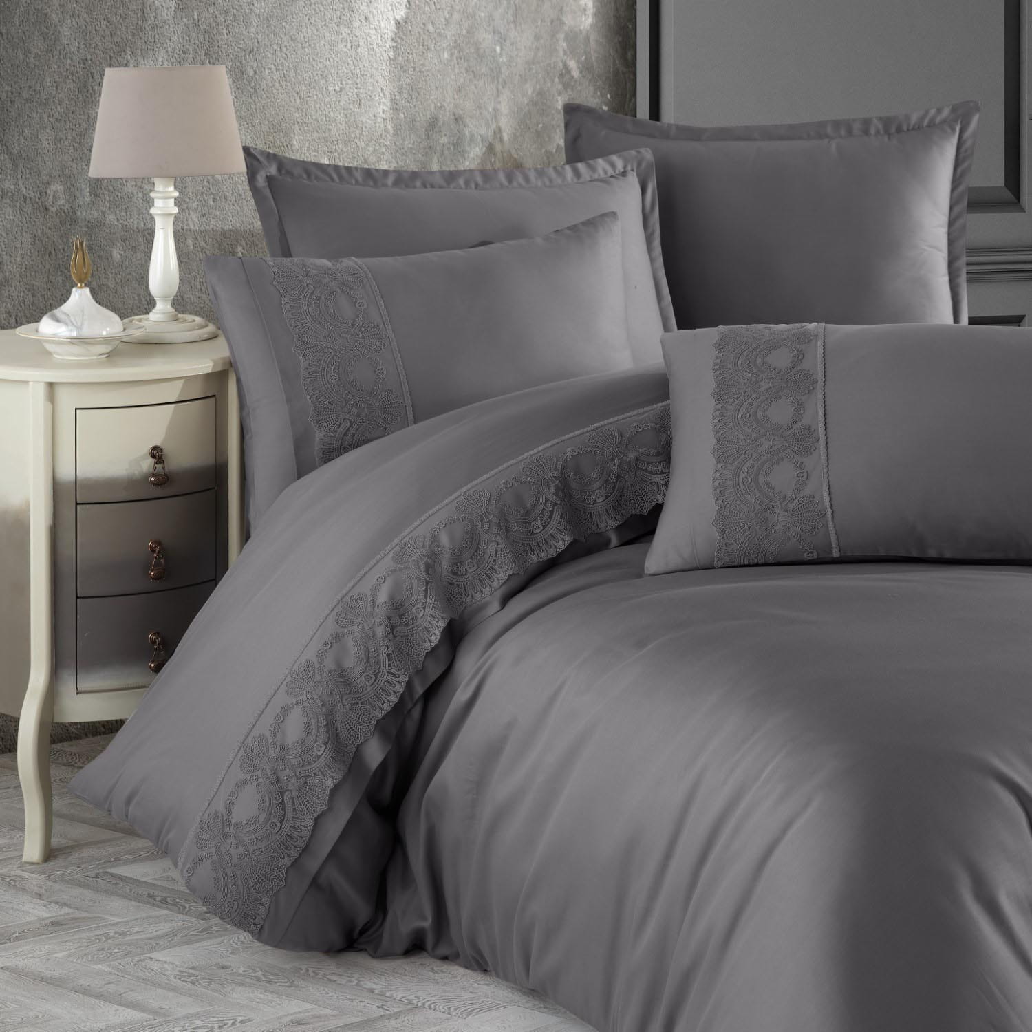 Pościel satyna bawełniana z gipiurą grafitowa 220x200 GUIPURE