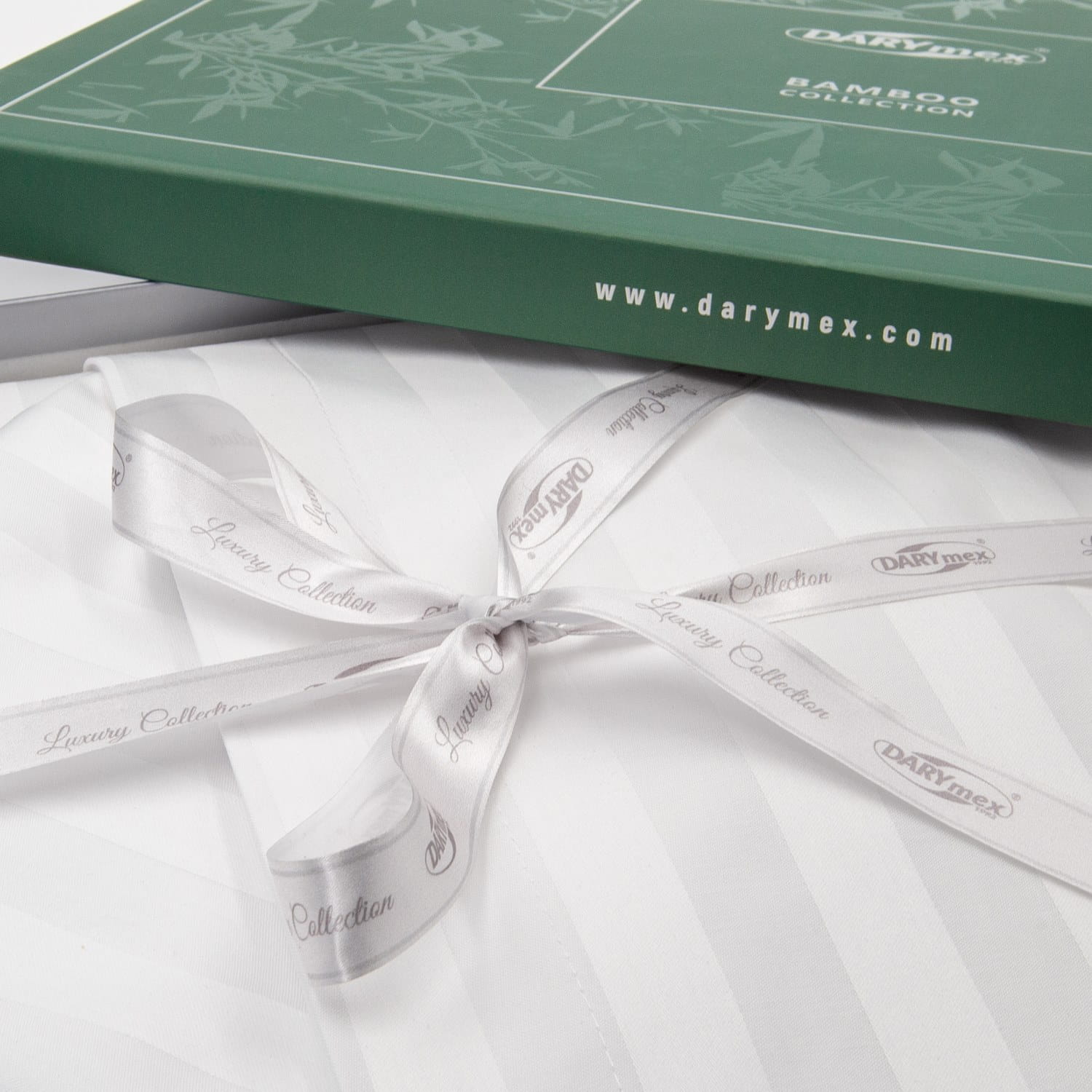 Ekskluzywny komplet pościeli wykonany z najwyższej jakości tkaniny bambusowo-bawełnianej o splocie satynowym z delikatnym połyskiem. Klasyczny i stylowy wzór w pasy o szerokości 2 cm nadaje jej wyjątkowej elegancji. Tkanina łączy antybakteryjne i termoregulacyjne właściwości z wytrzymałością i naturalnością bawełny. Jest bardzo delikatna i miła w dotyku. Komplet uszyty jest w elegancki i staranny sposób. Poszewki 70x80cm posiadają 4 cm listwę ozdobną, a zamek błyskawiczny zakryty jest pliską. Całość pakowana jest do ekskluzywnego pudełka co sprawia iż może być luksusowym prezentem. Komplet pościeli wyprodukowano z tkanin posiadających certyfikat.