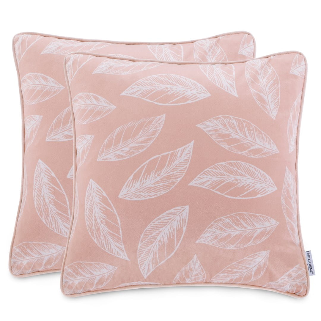 Poszewka dekoracyjna CALM kolor pudrowy róż drukowany motyw roślinny styl klasyczny velvet 45x45 ameliahome