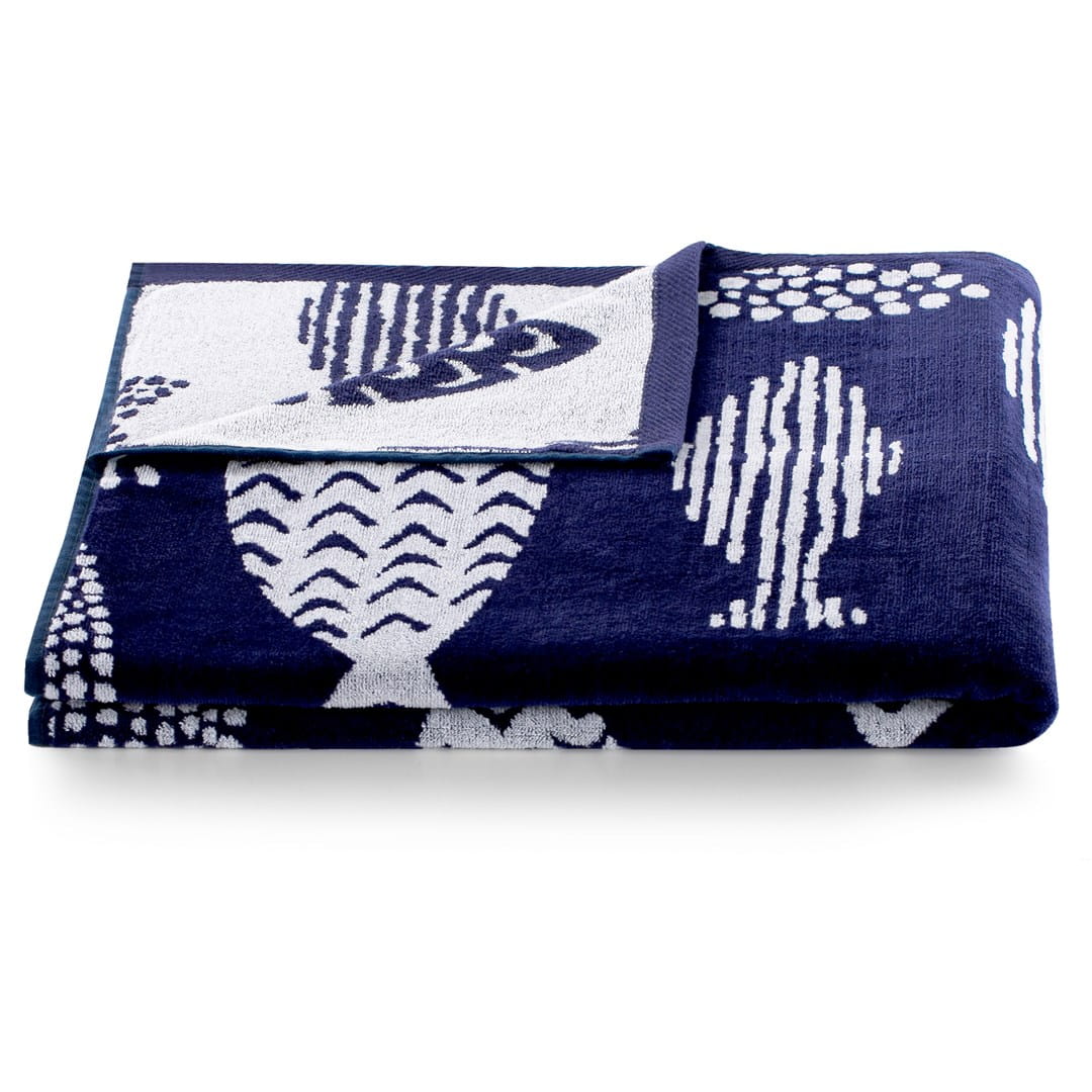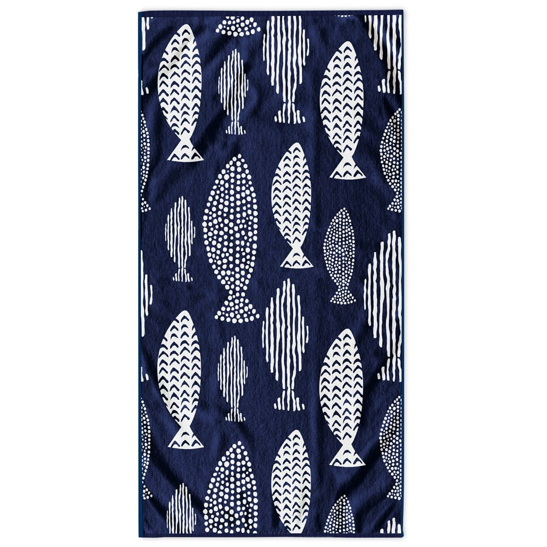 Ręcznik FISH kolor niebieski przód welur, tył frotte 90x180 decoking