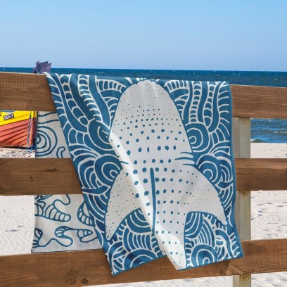 Ręcznik SHARK kolor niebieski przód welur, tył frotte 90x180 decoking
