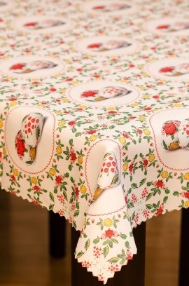 Obrus Wielkanocny drukowany plamoodporny jest praktyczny, nowoczesny i cechuje się wyjątkową trwałością. Wykonany z tkaniny poliestrowej, o gramaturze od 140 do 160 g/m2. Tkanina jest obustronnie wzbogacona powłoką plamoodporną (teflon).